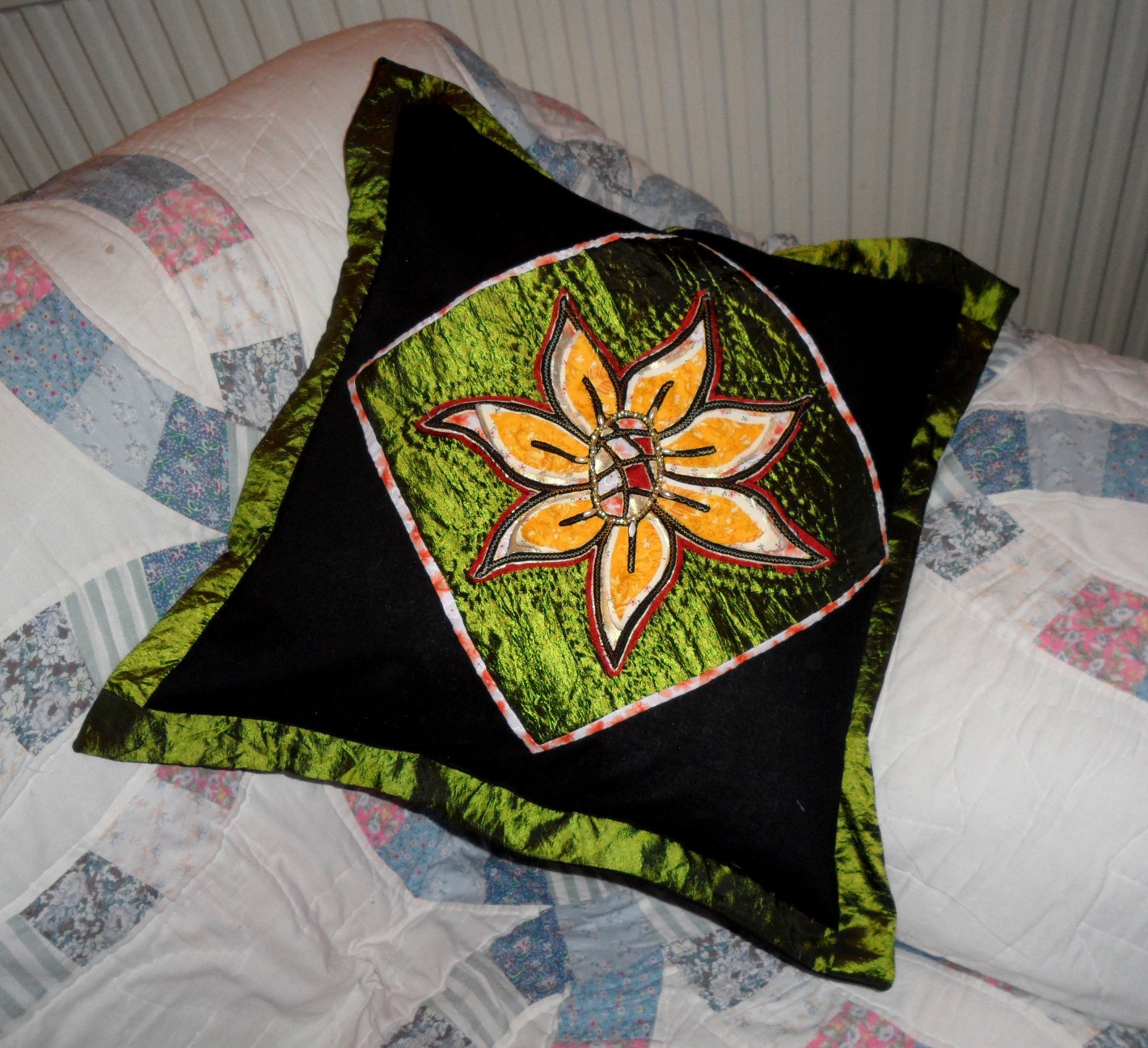 I’m sat busy getting stuff ready for next weeks Quiltshow at Westpoint, Exeter! If you’re about don’t forget to come and say hello to me on my stand, or come have an hours fun playing in class!! We’ll be making the center panel of this cushion (or whatever else you fancy making it into!!)