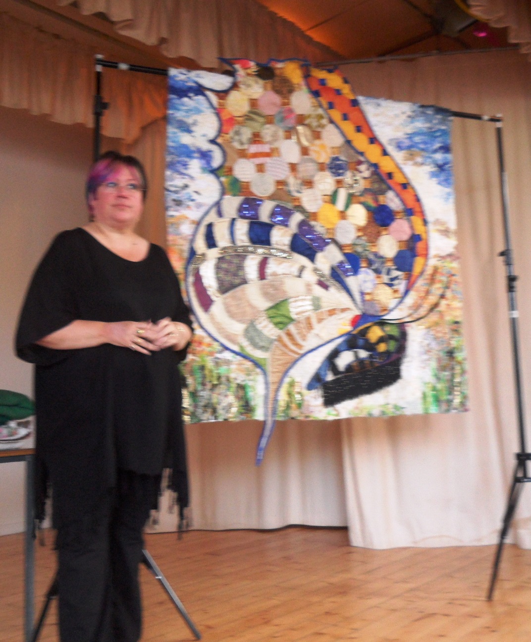 I got to show some of my quilts and explain a few what and whys about them, always a great joy for me. Then we were treated to lunch, Fabulous thank you, good company and tasty stuff, all manner of cakes in the afternoon……the orange cupcakes were rather good……what more could a social quilter ask for?? …..afternoon entertainment by Barbara Chainey?!! What an added bonus! We were privileged to watch as Barbara talked us through her collection of work by The Tentmakers of Cairo, amazing, thank you for sharing!