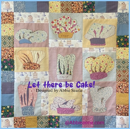An appreciation quilt of those who feed us cake! Wherever quilters gather there is cake, this small hanging/quilt is in appreciation of all of there hard work – may they have floral chef hats! Finished size is approx 35.5″x 35.5″